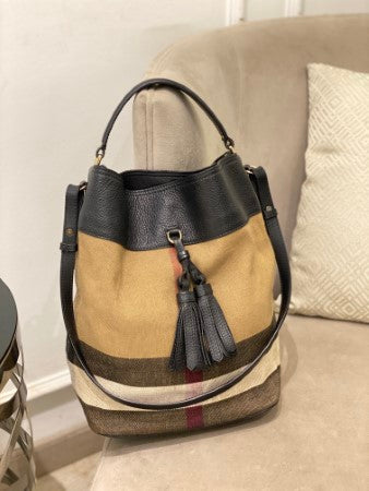 Burberry Black Brit Check Ashby Bucket Bag